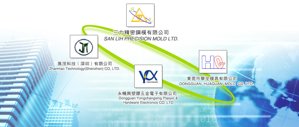 三力精密鋼模,目前在中國大陸東莞地區,投資合作有東莞市華全模具有限公司,東莞市永暢興塑膠五金電子有限公司、展茂科技(深圳)有限公司;提供客戶自設計、開模、射出及後製程加工服務。